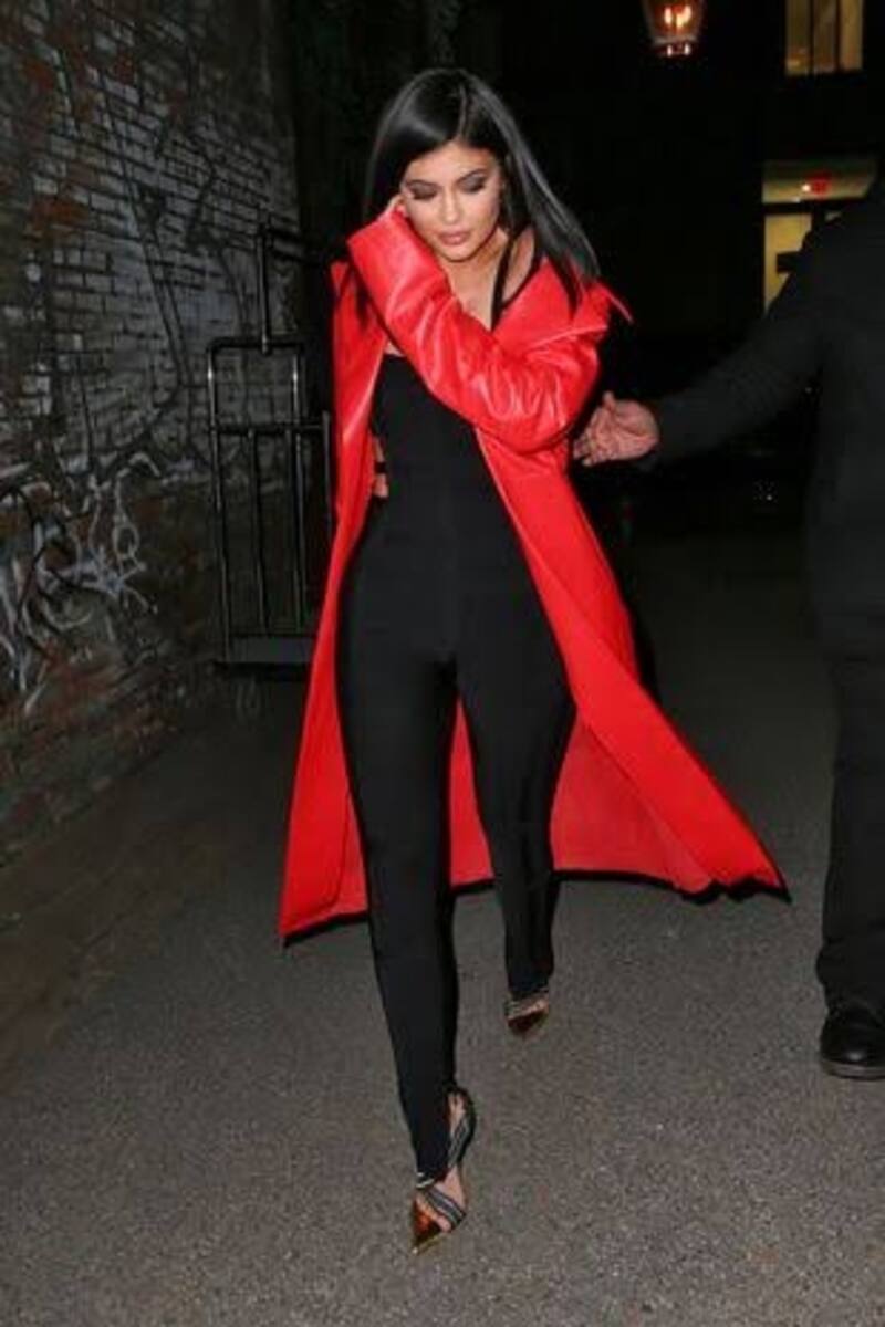 Es ideal que la prenda roja utilizada sea la que más llame la atención y así como la usa Kylie, con un look negro que se esconde para para darle protagonismo al abrigo, se pueden combinar otras prendas destacando el rojo en bufandas largas, chamarras, guantes, zapatos, pero en todo momento utilizarlo con tonos claros u oscuros para que el principal brille más.