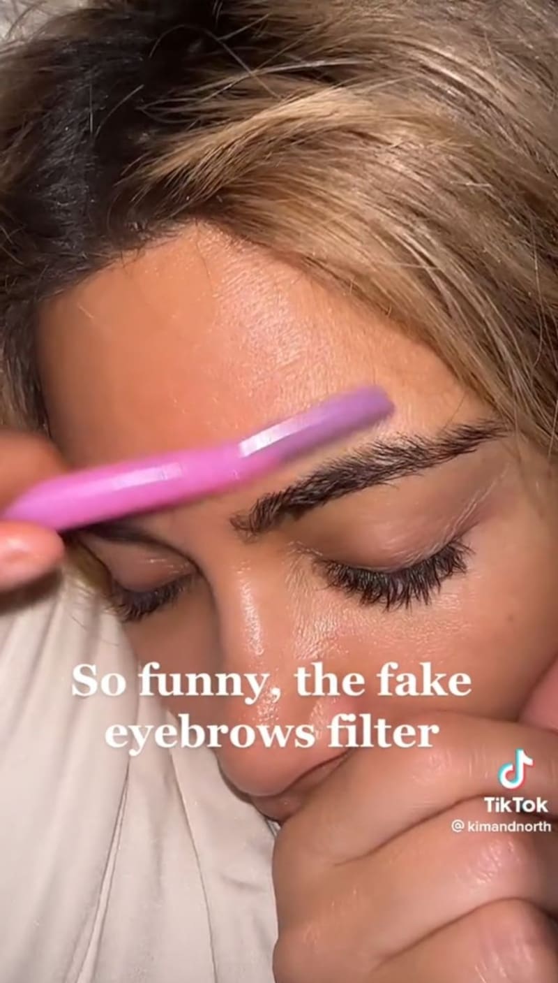 Mediante el video que compartió la también hija de Kanye West, se ve que está caminando mientras sostiene en la mano un depilador de navaja para cejas. “Esto es divertido. El filtro de las cejas falsas”, escribió sobre la grabación en la que muestra su camino hacia el cuatro de su madre.
