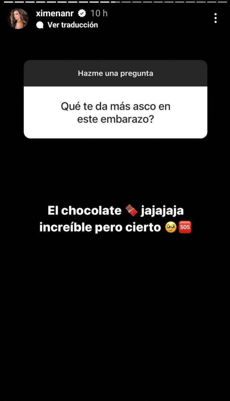 A través de historias Ximena dejó la respuesta de cada uno de los cuestionamientos que le hicieron; habló de la comida que le da asco, mencionó cómo ha sido el proceso de estar al pendiente de su primera hija e indicó cómo será su parto, entre otras cosas, pero para decepción de muchos aún no ha revelado el nombre que llevará el niño que espera.