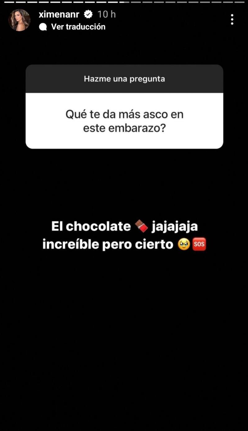 A través de historias Ximena dejó la respuesta de cada uno de los cuestionamientos que le hicieron; habló de la comida que le da asco, mencionó cómo ha sido el proceso de estar al pendiente de su primera hija e indicó cómo será su parto, entre otras cosas, pero para decepción de muchos aún no ha revelado el nombre que llevará el niño que espera.