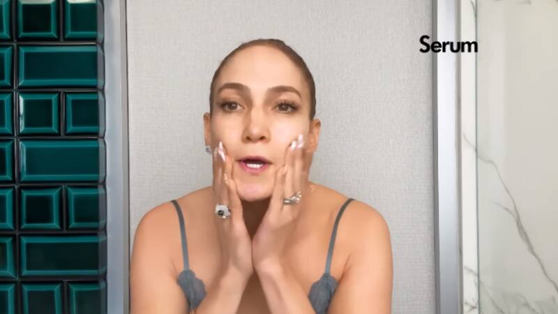 La actriz de Marry Me comenzó su rutina de cuidado de la piel con un limpiador de su propia marca, luego agregó crema hidratante en su rostro y cuello dando un ligero masaje. Posteriormente, la cantante aplicó un poco de bloqueador solar asegurando que este producto es la clave en un buen cuidado de la piel, ya que ayuda a combatir el envejecimiento prematuro. “No lo hace todo, pero si empiezas a usarlo joven se nota”, expresó JLo.