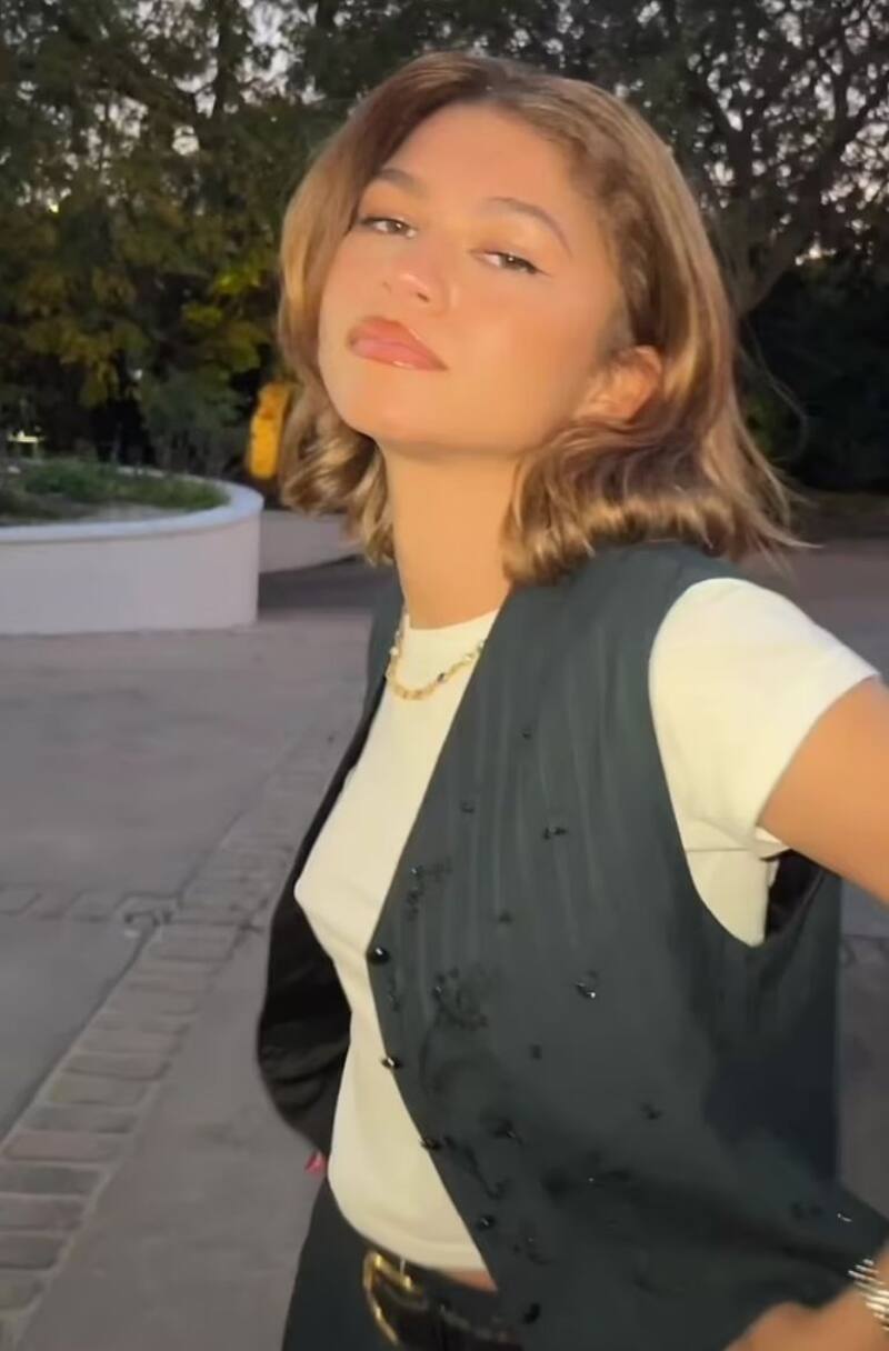 En el registro que acumula casi cinco millones de likes, Zendaya aparece con el corte que dejó su cabello a la altura de los hombros, con mechones en color miel que se separaban desde la mitad de su cabeza para llegar a encontrar descanso detrás de sus orejas. La actriz maquilló sus ojos con un fino delineador.