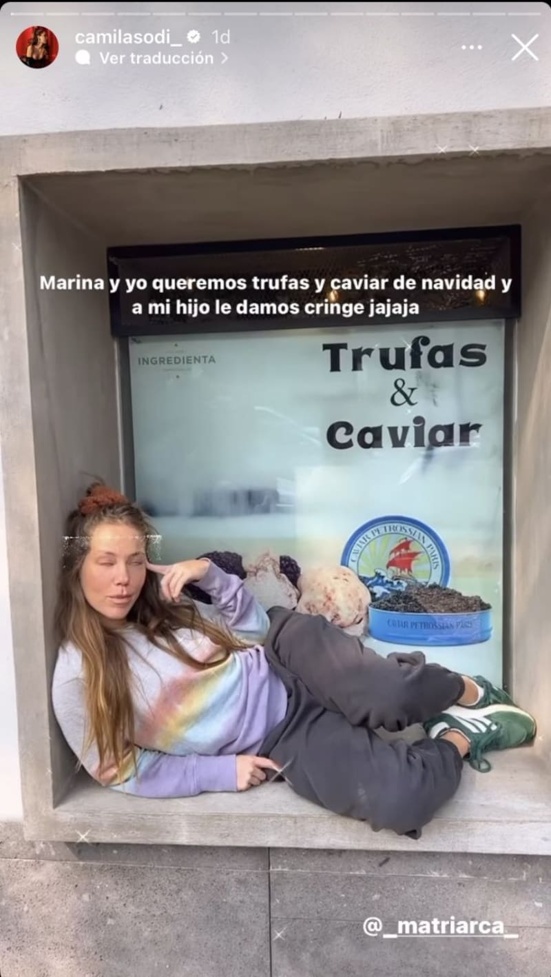 En el video se encuentra Marina Sodi, hermana de Camila, recostada sobre una ventana en la calle y de fondo hay un anuncio de “Trufas & Caviar”, entonces asegura que ya sabe lo que quiere para Navidad. Mientras la actriz de Falsa identidad se ríe Jerónimo se queja de su mamá y su tía.