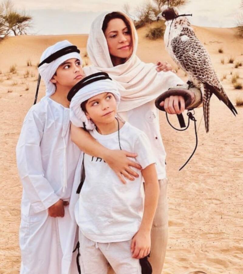 “En el desierto buscando la serenidad en esta navidad”, escribió la cantante junto a una tierna fotografía al lado de sus hijos, Milan (9) y Sasha (7) en la ciudad de Dubái, y es que, según algunos medios internacionales, la barranquillera voló el pasado 22 de diciembre hasta los Emiratos Árabes para pasar las fiestas navideñas antes de mudarse con los menores de edad a Miami.