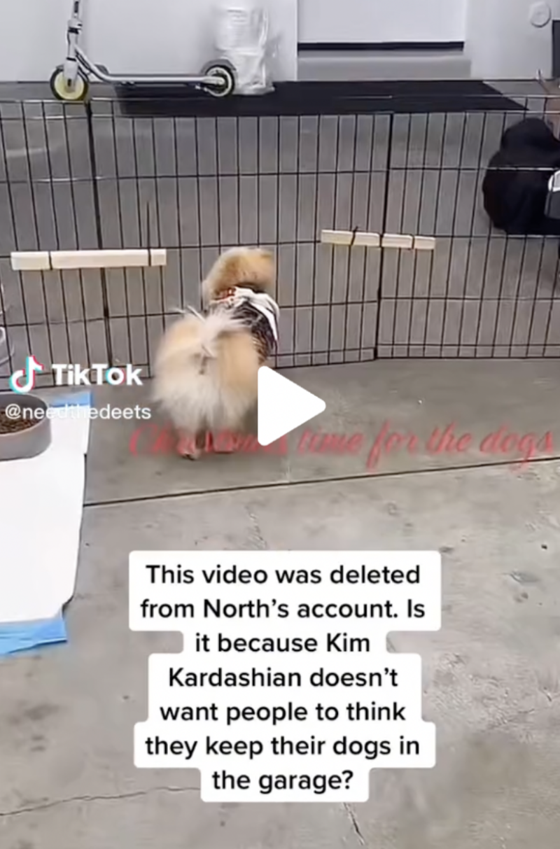 En el video que subió la hija mayor de Kanye West muestra el espacio en el garage en el que están los perros que tiene la empresaria, además se les ve dentro de un corral con algunos cojines y tapetes para que puedan hacer del baño y también sus trastes para agua y comida.