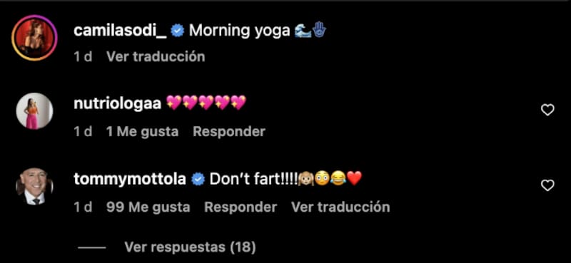 Las fotos causaron tanta conmoción que hasta el momento cuentan con más de 300 mil reacciones y muchos comentarios halagando tanto su belleza como su elasticidad, pero uno de los mensajes que destacó es el de Tommy Mottola, esposo de Thalía.