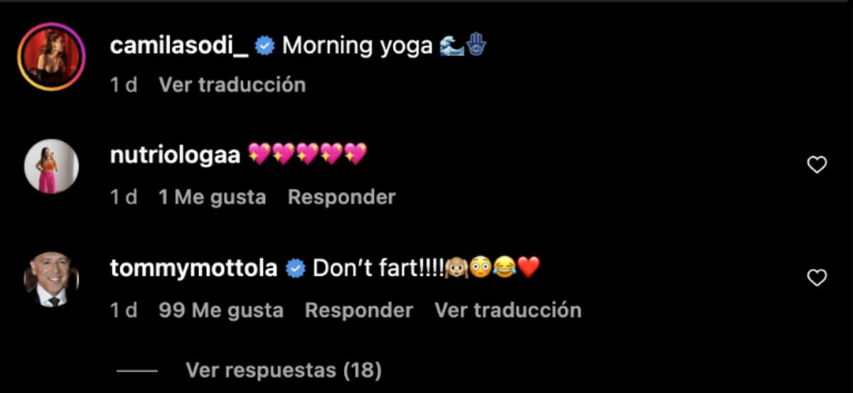 Las fotos causaron tanta conmoción que hasta el momento cuentan con más de 300 mil reacciones y muchos comentarios halagando tanto su belleza como su elasticidad, pero uno de los mensajes que destacó es el de Tommy Mottola, esposo de Thalía.