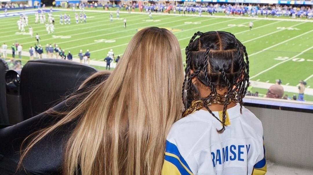 La socialité subió un par de videos cortos en el que se observa a Saint disfrutando del partido, jugando, celebrando, y a pesar de que los Rams no lograron ganar el juego, no impidió que el día fuera especial para madre e hijo; cabe mencionar que North, Chicago, y Psalm no estuvieron presentes.