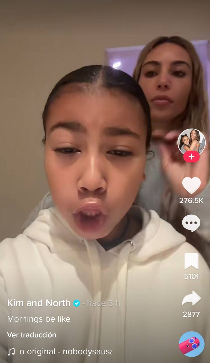 North West (9) publicó un video en su cuenta de TikTok mostrándole a sus seguidores cómo son sus mañanas junto a Kim Kardashian. "Las mañana son así", escribió la también hija de Kanye West en esta publicación que subió a la red social que comparte con su madre y en la que se han hecho muy populares.