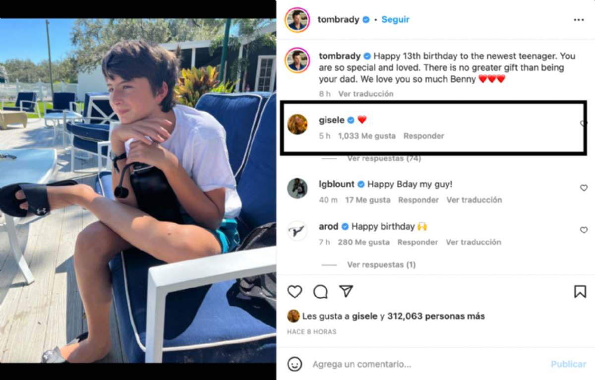 “Feliz 13 cumpleaños al nuevo adolescente. Eres tan especial y amado. No hay mejor regalo que ser tu papá. Te queremos mucho Benny”, escribió el siete veces ganador del Super Bowl, el posteo fue aplaudido por la brasileña, quien dejó un corazón en los comentarios mostrando que la relación con su ex esposo es cordial.