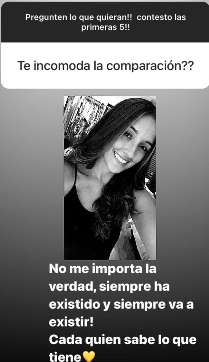 Por ello realizó una dinámica en su cuenta de Instagram en la cual le prometió a sus seguidores contestar las primeras cinco preguntas, una de ellas fue si no le molestaban las comparaciones con la cantante venezolana.
