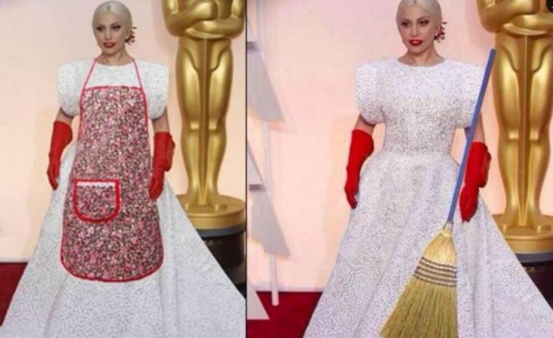 La compositora fue blanco de burlas cuando asistió a la gala de los Oscar 2015 usando un vestido blanco que acompañó con mangas en tono rojo que parecían ser de plástico, los cibernautas usaron su foto para agregar en sus manos lava trastes, un mandil, y diferentes objetos que se usan para lavar el baño