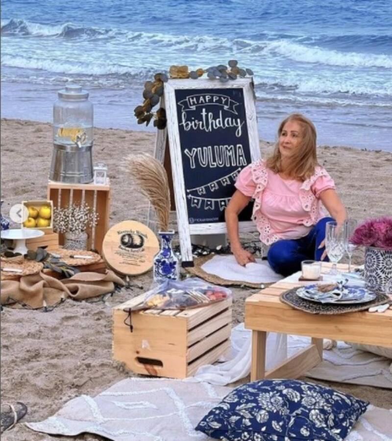 Yuvanna organizó la celebración en la mitad de la playa, ya que para su madre Yuluma el mar es el lugar de sus sueños y el paisaje predilecto. "Hoy mi reina está de cumple! Mi hermosa Madre, mi ejemplo, mi mano derecha, la otro mami de Fer, mi amiga, mi consentida! La celebramos a lo grande con un picnic espectacular en su lugar preferido! La playita.. y con una torta de que le dio este toque especial".