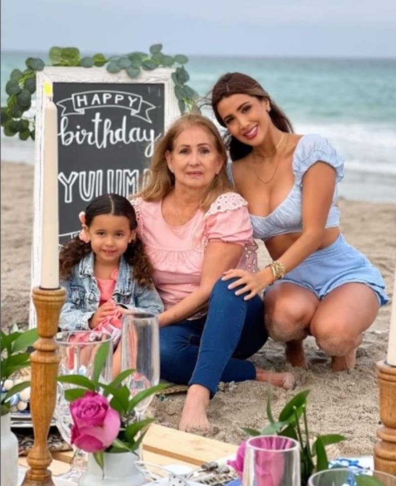 Yuvanna Montalvo (33) festejó de un modo muy particular el cumpleaños de su madre, Yuluma, acompañándola junto a su hija y esposo, Juan Carlos García, a apagar las velitas en el medio de la playa.