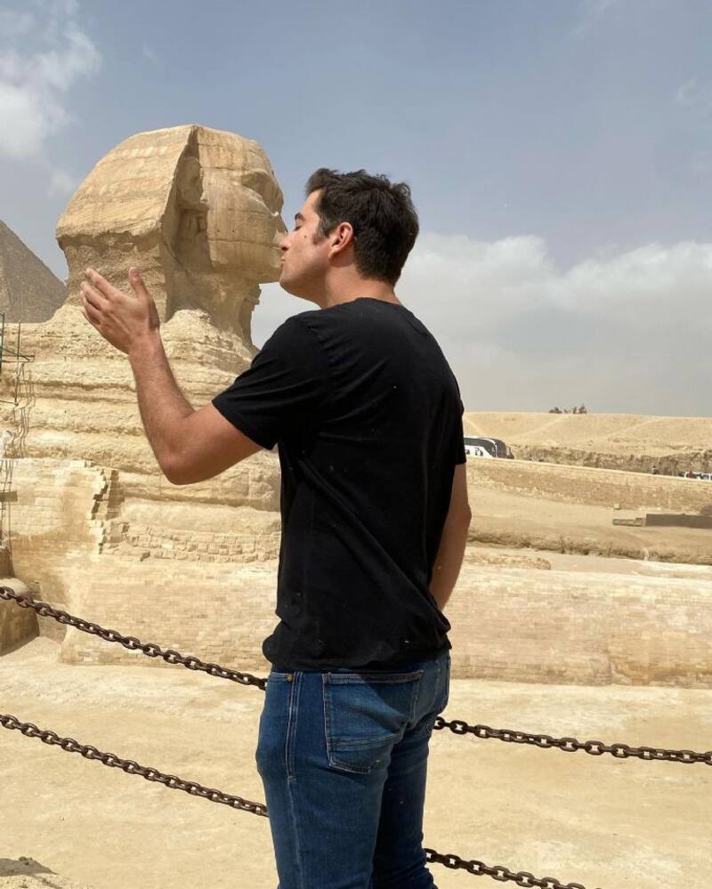 La sorpresa quedó al descubierto cuando el actor de Quererlo todo publicó una fotografía dándole un beso a la "novia" en cuestión; con el buen humor que lo caracteriza, el ecuatoriano, que se encuentra de viaje en Egipto, posó frente a la Esfinge de aquel país en una toma en la que parece que la está besando, lo que provocó simpáticas reacciones por parte de sus seguidores.