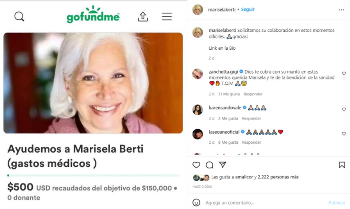 La actriz y cantante mexicana Mariana Seoane, aprovechó sus historias de Instagram para pedir apoyo a sus miles de seguidores para que se sumen a la recaudación de fondos en favor de Berti, a quien le tiene un gran cariño: “Les pido con todo mi corazón ayudemos a Marisela ¡uno de los seres que más amo!", escribió Mariana.