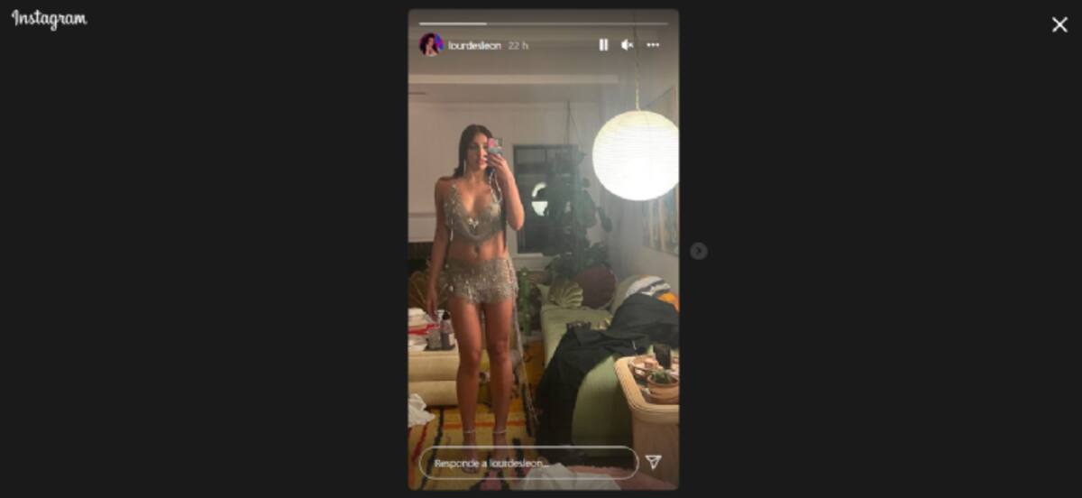 En esta ocasión, deslumbró a sus más de 200 mil seguidores en Instagram, al publicar una foto en sus historias de esa red social, donde se puede ver el atuendo metálico que lleva, que deja poco a la imaginación de sus fans sobre su esbelta figura.