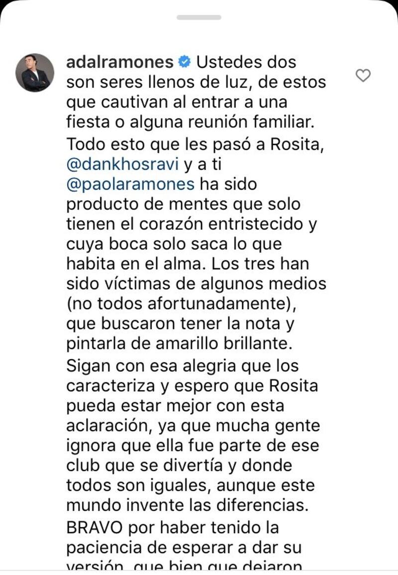 Mediante un video publicado en Instagram, Paola y Daniel aseguraron que los videos fueron editados por los medios, se disculparon por los "daños que pudieron causar" y le enviaron un mensaje a Rosita. "Durante las semanas pasada se ha viralizado un video donde se muestra una realidad opuesta a lo que realmente pasó", expresaron.