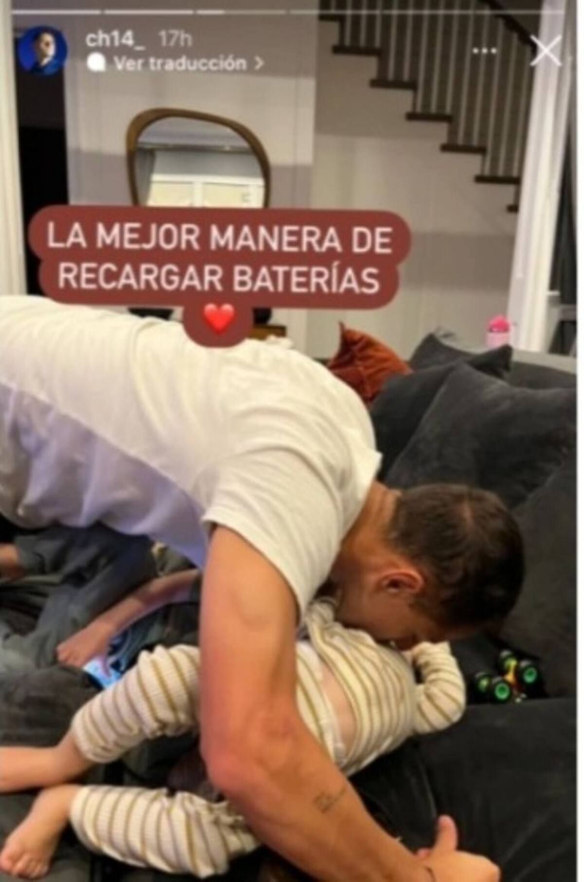 En la historia que posteó en Instagram se alcanza a apreciar que Hernández está dándole un beso a uno de sus hijos, aunque no se aprecian las caras de los pequeños, sólo se observa que están recostados en un sillón rodeados de algunos juguetes y uno de ellos tiene un dispositivo electrónico en su mano.
