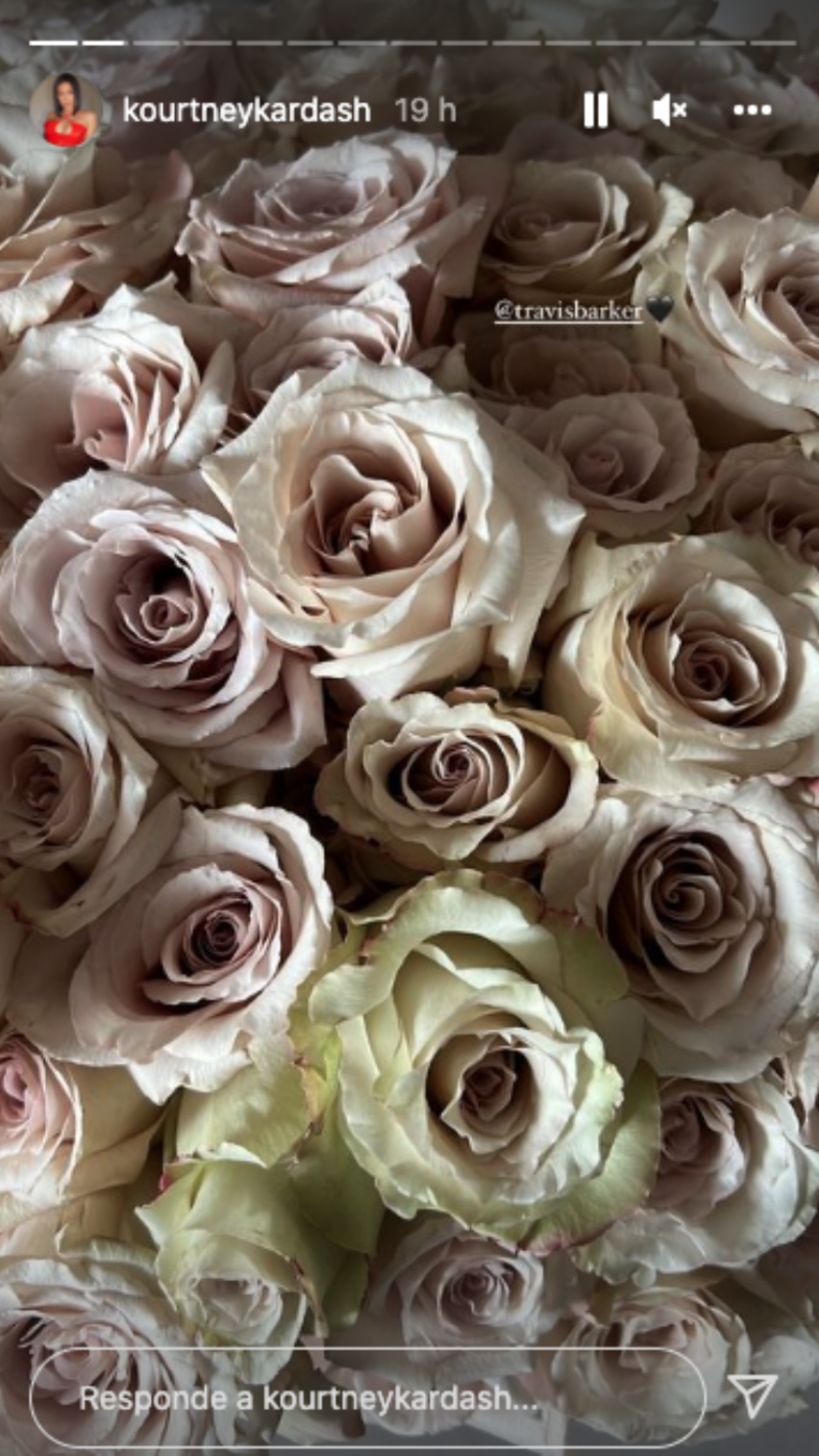 Pero no fue la única que presumió el detalle de Travis, su futura esposa Kourtney Kardashian también recibió un regalo floral de su novio y compartió la foto en sus historias de Instagram.