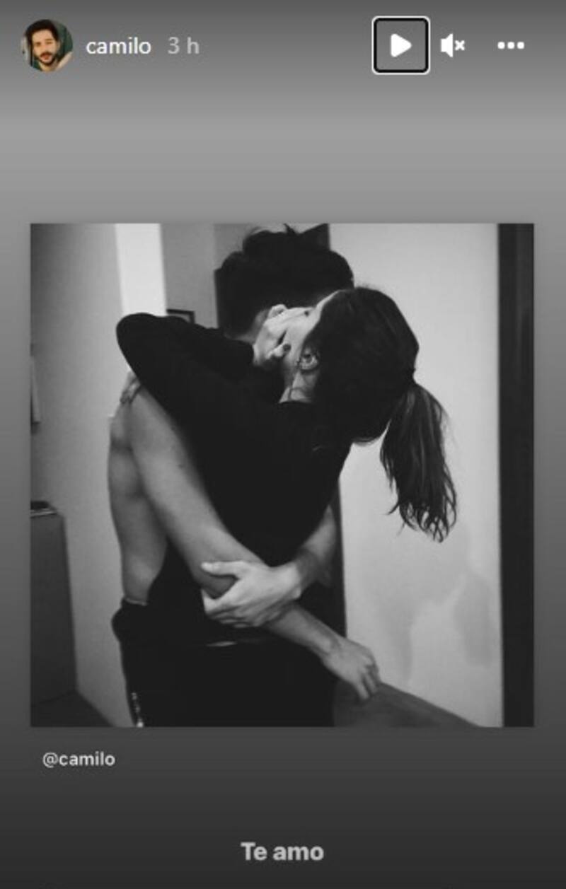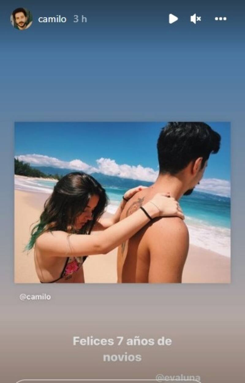 Camilo, a su vez, subió varias fotografías: una abrazado a Evaluna, y otras en la que aparecen bastante más jóvenes en una playa. Cada imagen con una frase o palabra: "Te amo", "7 años de novio", "Para siempre" y "Tuyo".