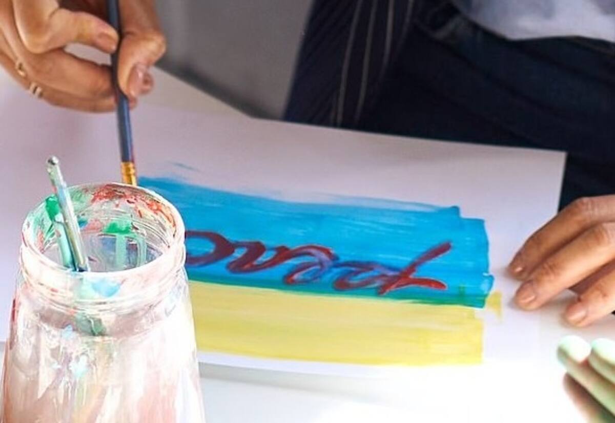 La ex actriz de "Suits" estaba escribiendo cuidadosamente la palabra "paz" en una pintura amarilla y azul que, a primera vista, parecía ser la bandera de Ucrania. Sin embargo, la duquesa pintó la bandera al revés: la banda horizontal amarilla estaba sobre la azul.