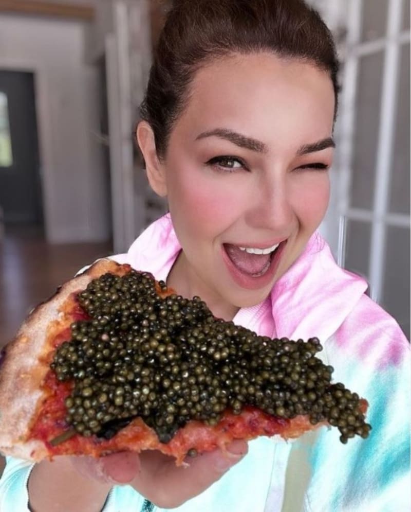 Es que claro, tapar la superficie de un slice de pizza de tomate y queso con caviar, no puede pasar inadvertido. Y Thalía, quizás calculando lo que causaría, no sólo lo comentó sino que también se sacó una provocadora fotografía a punto de engullirse el bocado.