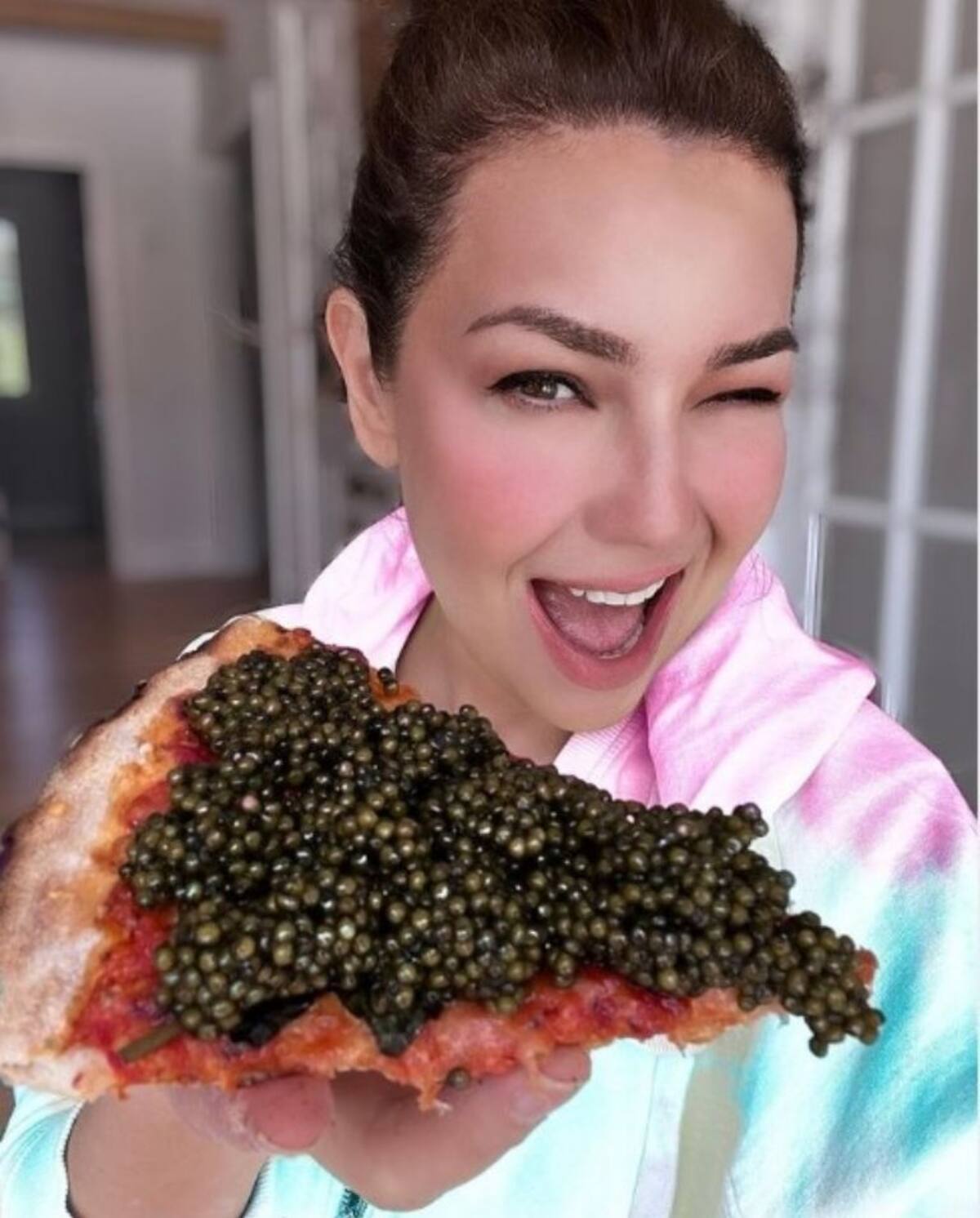 Es que claro, tapar la superficie de un slice de pizza de tomate y queso con caviar, no puede pasar inadvertido. Y Thalía, quizás calculando lo que causaría, no sólo lo comentó sino que también se sacó una provocadora fotografía a punto de engullirse el bocado.