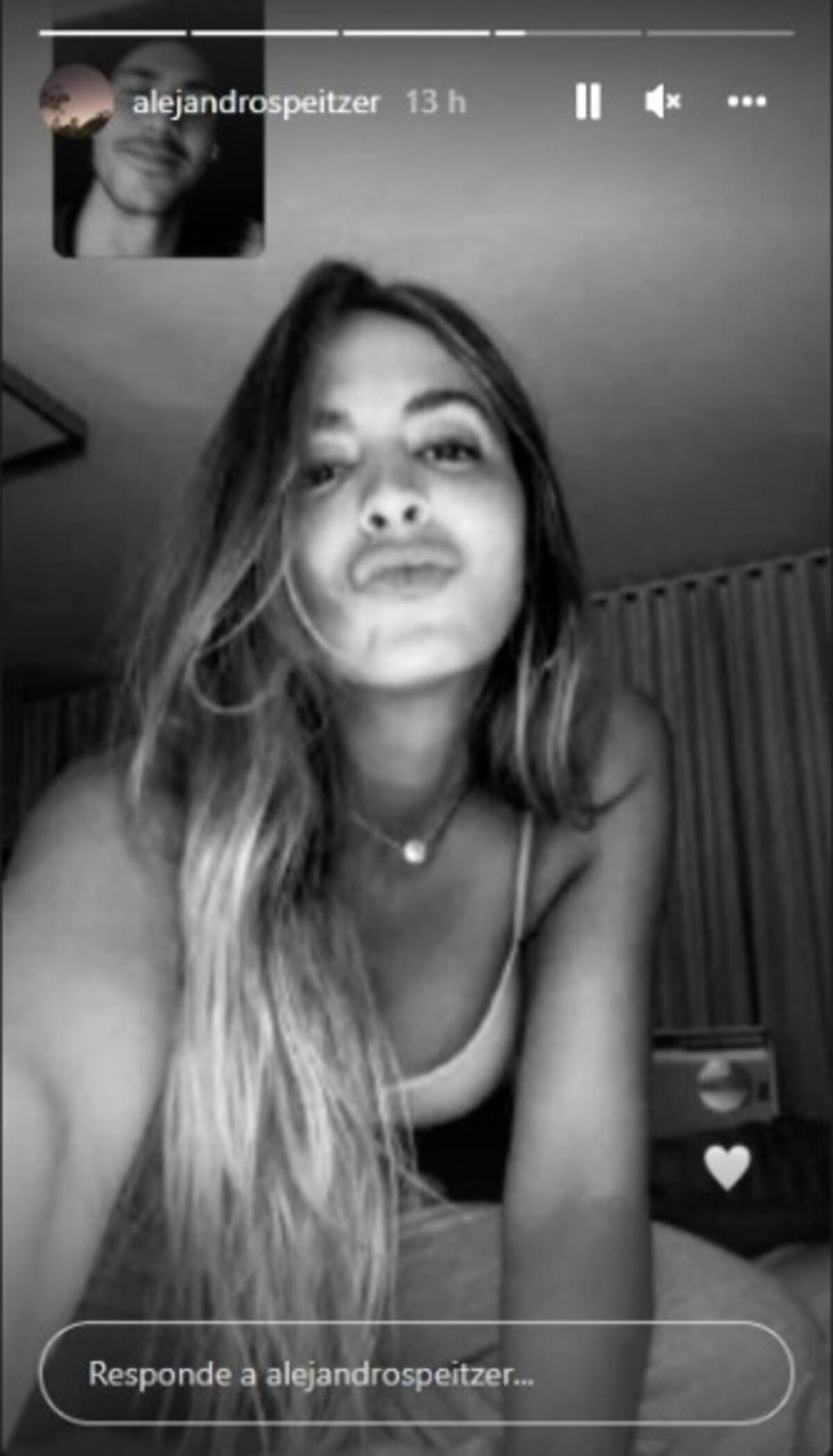 Este martes, Alejandro posteó una historia en Instagram de una captura de pantalla que realizó mientras mantenía una videollamada con la modelo venezolana, quien posa mandando un beso mientras que el actor sólo sonríe, a este post le agregó un emoji de corazón blanco.