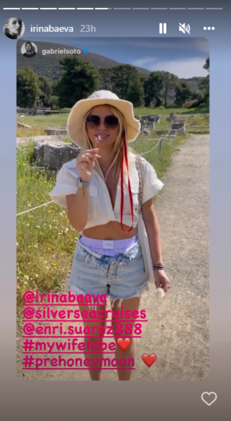 “Mi hermoso futuro esposo, pre luna de miel”, escribió Irina en una de sus historias, donde se puede ver al galán de telenovelas en alguno de los lugares que visitaron.