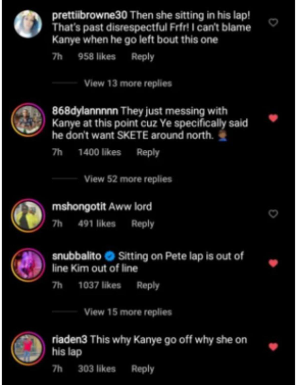 "Creo que es inapropiado que tu hija se siente en las piernas de tu novio", "Tal vez North es físicamente afectuosa con todos, pero para muchos niños, ese nivel de contacto también implica un nivel de cercanía emocional", "Creo que es normal desconfiar de ese tipo de cercanía entre un niño y la nueva pareja de sus padres. Especialmente mientras la niña está experimentando el divorcio de sus padres, muy fresco", se lee en internet.