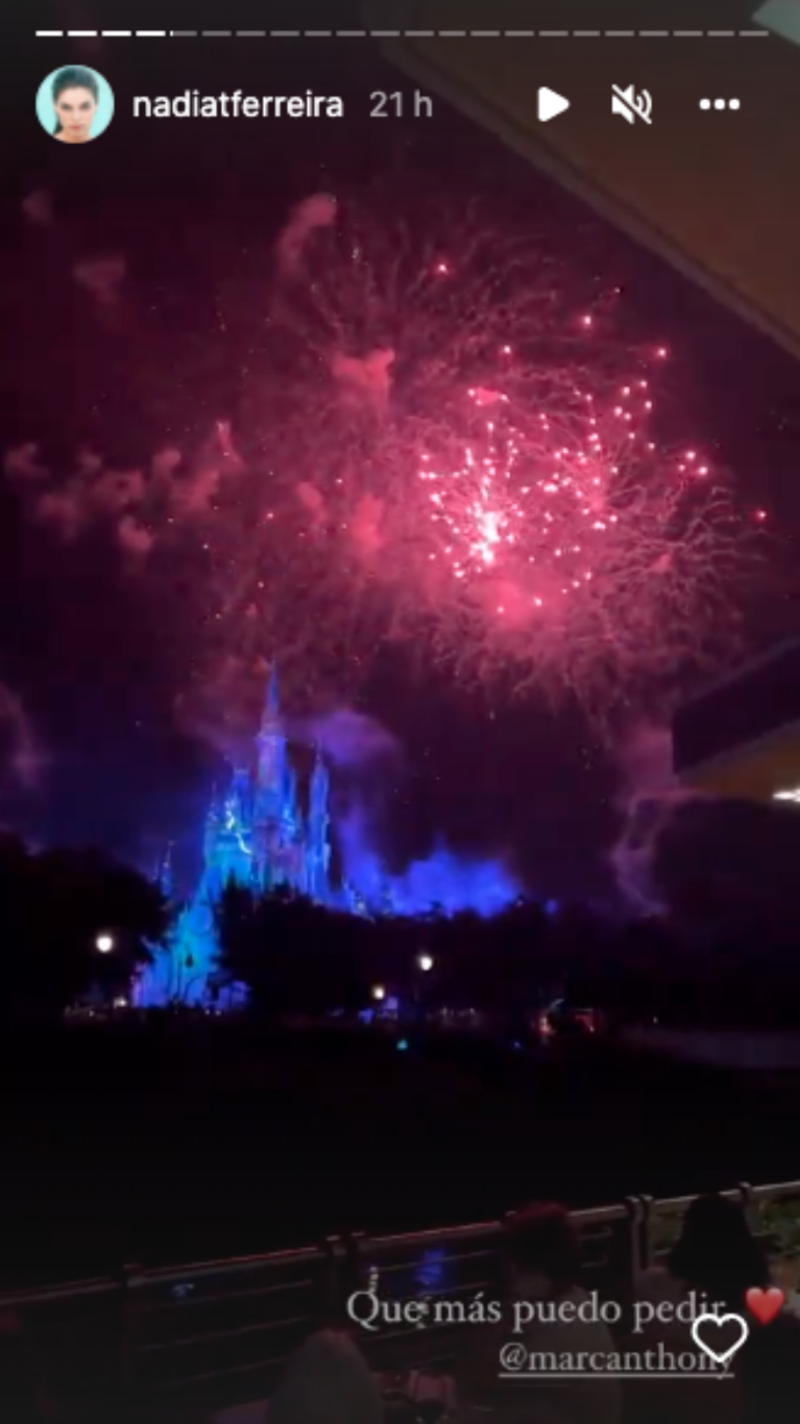 Por medio de sus historias de Instagram Nadia Ferreira compartió un pequeño clip en el que se veía el espectáculo de pirotecnia y afirmó que no necesitaba nada más: “Qué más puedo pedir”.