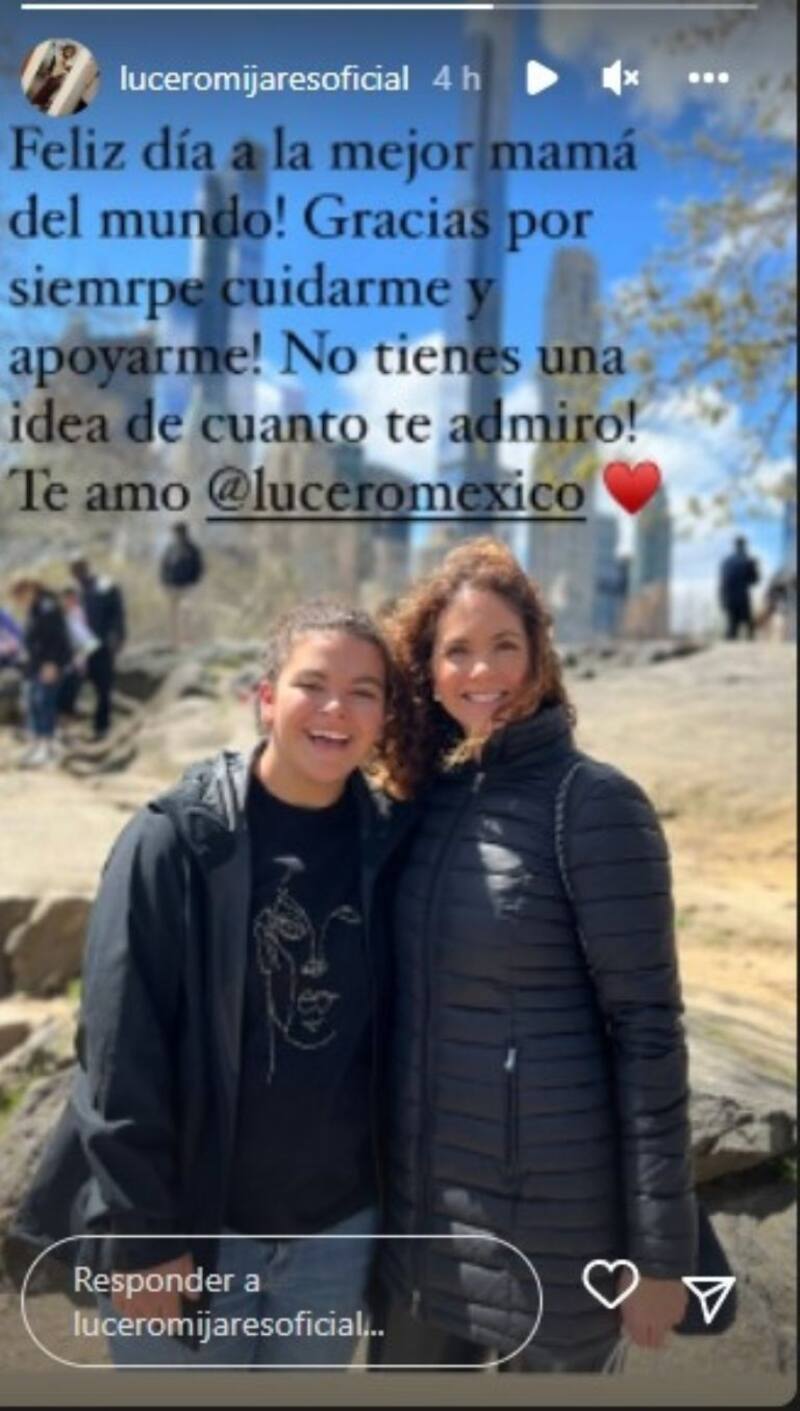 “¡Feliz día a la mejor mamá del mundo! ¡Gracias por siempre cuidarme y apoyarme! No tienes una idea de cuánto te admiro! Te amo @Luceromexico”. En su post se ve muy sonriente al lado de su mamá en un lugar abierto.