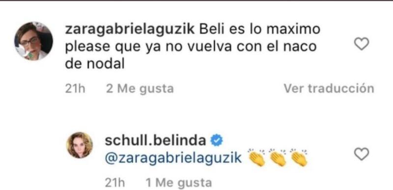 Un usuario dejó un comentario en una de sus publicaciones. "Beli es lo máximo, please que ya no vuelva con el naco de Nodal", escribió. La madre de Belinda no dejó pasar este comentario y decidió responderle con emojis de manos aplaudiendo, lo que causó que un gran número de personas le enviaran fuertes mensajes.
