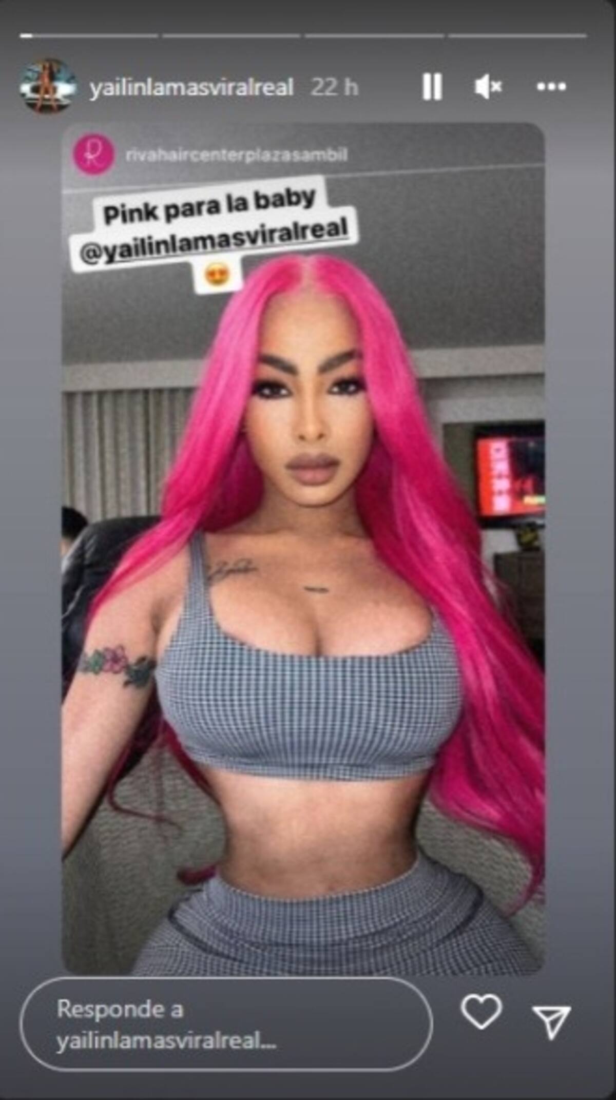 Una cuenta de Instagram compartió un retrato de la influencer que ella misma re posteó en sus historias, su larga cabellera rosa es el principal foco de atención en la imagen, pero resalta su pequeña cintura, que aunque la tiene, como lo ha comentado, por las cirugías que se ha hecho ahora luce más pequeña de lo que normalmente es.