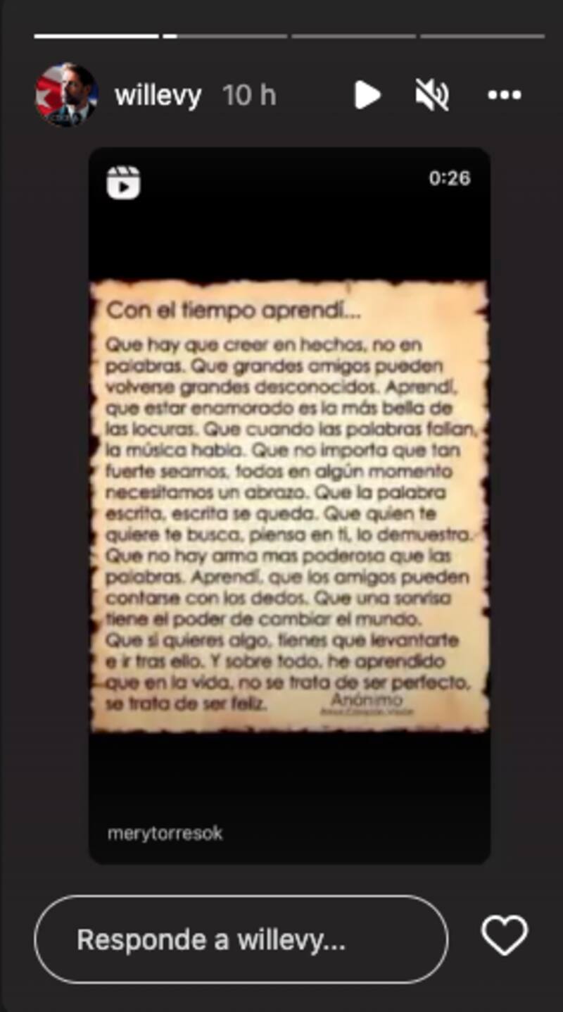 Ahora a cuatro meses de su rompimiento, William Levy sorprendió subiendo a sus historias de Instagram un video que habla sobre el amor y al que acompañó con un mensaje personal que muchos de sus seguidores interpretaron como de arrepentimiento.