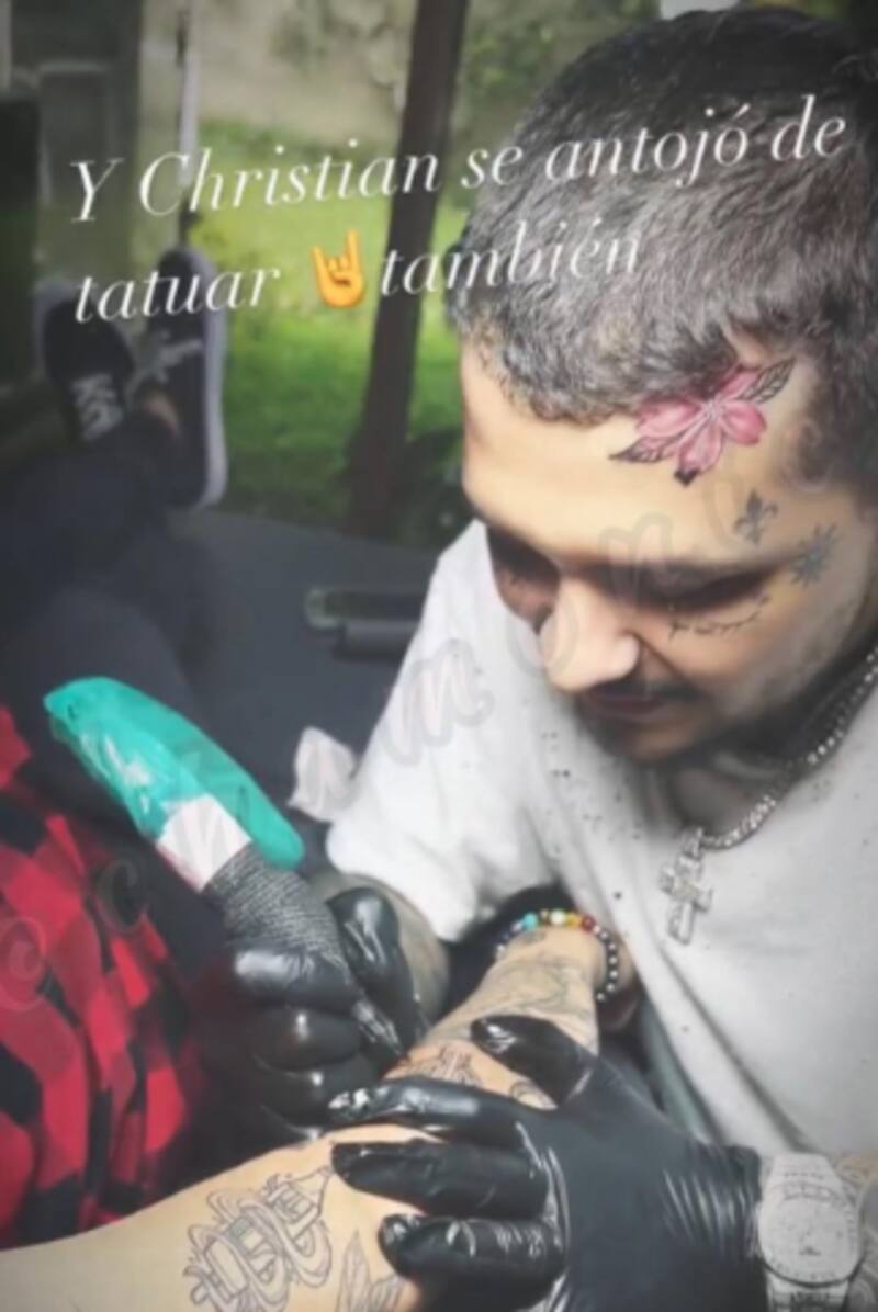 Pero no fue la única marca de tinta que se hizo, pues en la frente, donde tenía tatuado el nombre de una de las canciones de Belinda, ahora lucen unas flores de colores rojizos.