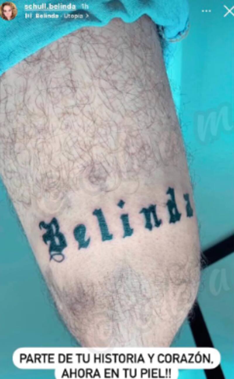 Y poco después de que el cantante de La Sinvergüenza compartiera las fotos en las que se ve que se cubrió el tatuaje, la mamá de Belinda subió también a sus historias una foto de un fan de su hija que se tatuó su nombre, además se puede ver una conversación en donde elogia este acto.