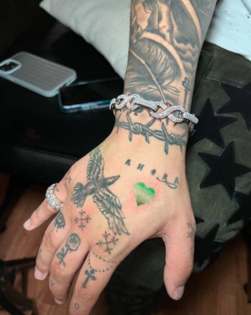 Durante su visita a Costa Rica, lugar en donde dio un concierto, Nodal visitó a Catalina Araya, una artista del tatuaje quien solo tiene 10 años y le hizo un corazón verde en la mano.