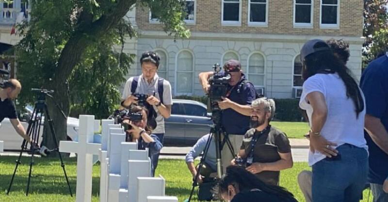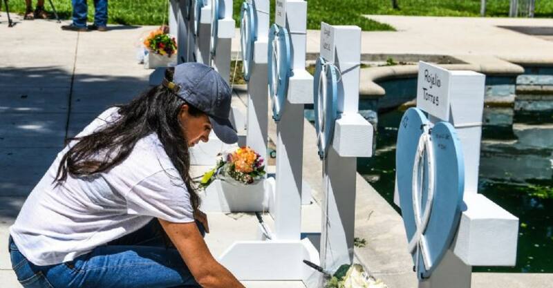 Markle fue vista el jueves dejando un ramo de rosas blancas en un memorial improvisado afuera del juzgado del condado de Uvalde, no lejos de la escena de los asesinatos de la escuela primaria Robb.