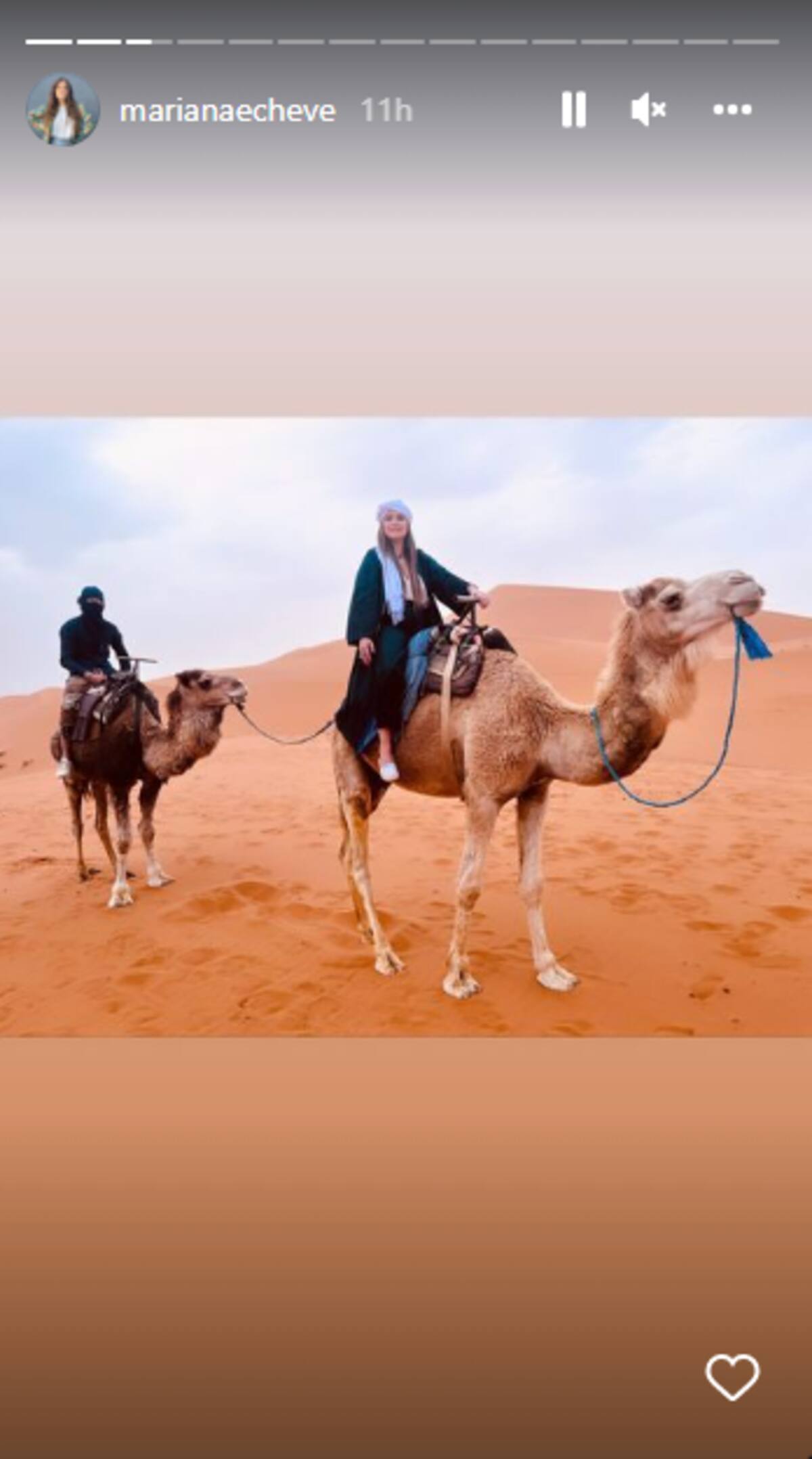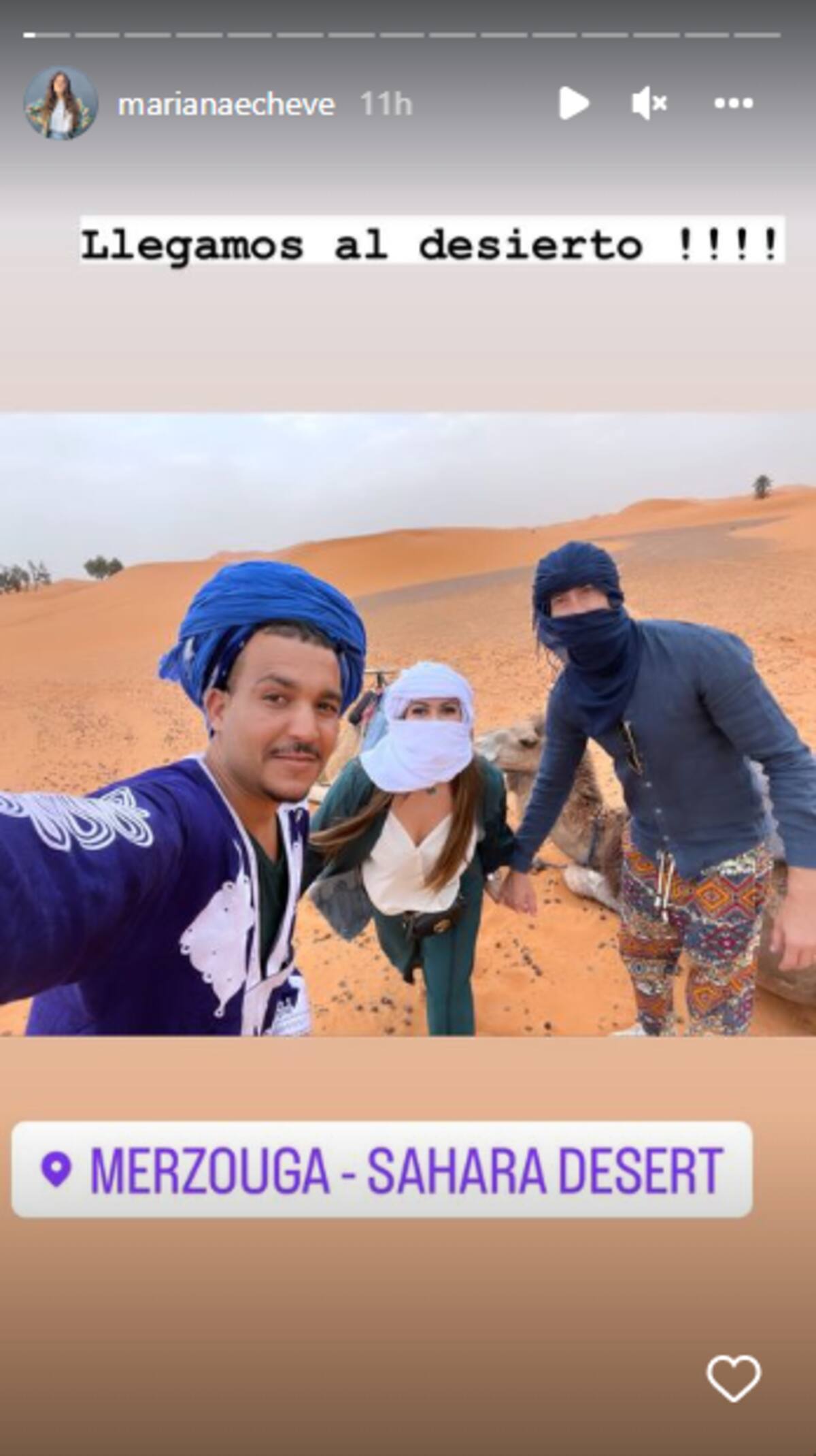 Además también compartió algunas historias donde aparece con un camello en el desierto de Sahara. "Llegamos al desierto", se lee en la fotografía donde posó con el futbolista del Club América y el guía turístico.