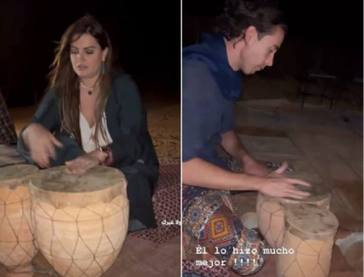Por la noche, tuvieron otro momento especial en el sitio donde se hospedaron. Ahí la pareja pudo convivir con otros huéspedes y según se puede apreciar en sus captura, también tocaron los tambores. "En medio del desierto", escribió en una de las postales para describir la ubicación de su alojamiento.