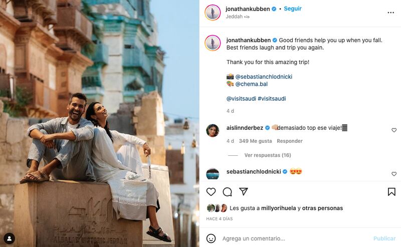 Fue en su cuenta de Instagram que Kubben subió una foto con la hija mayor del actor mexicano Eugenio Derbez durante el viaje que ambos hicieron hace unos días a Arabia Saudita y la descripción de la publicación fue lo que más llamó la atención.