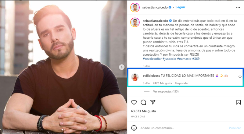 Estos rumores se reavivaron por un mensaje que la actriz colombiana hizo en una de las publicaciones de Sebastián, quien desde hace un par de meses se ha dedicado a hablar de una vida más espiritual a través de la sanación del alma, en la cual habla de cómo encontrar la felicidad.
