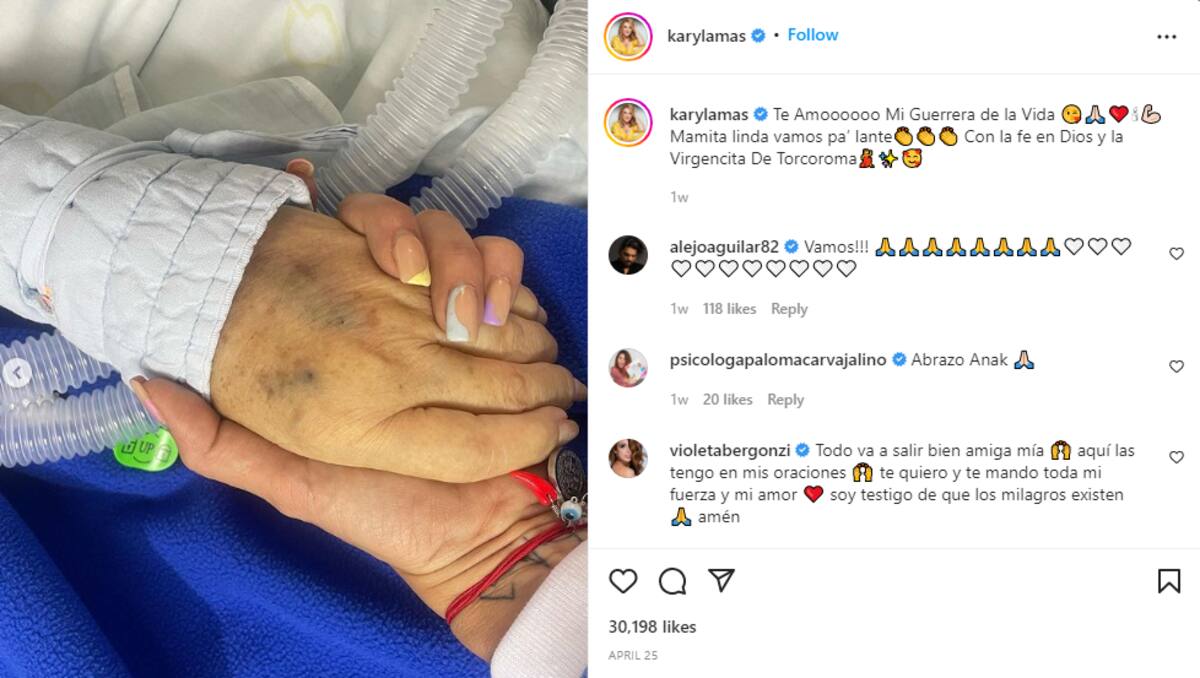 A unos días de que se celebre el Día de las madres en Colombia, el 8 de mayo, Ana Karina se enfrenta a este gran dolor, pero con mucha fortaleza se toma el tiempo de dedicar un emotivo mensaje a su procreadora a través de su cuenta de Instagram, donde aparece en una foto al lado de su "súper angelito", como la llama en su texto.