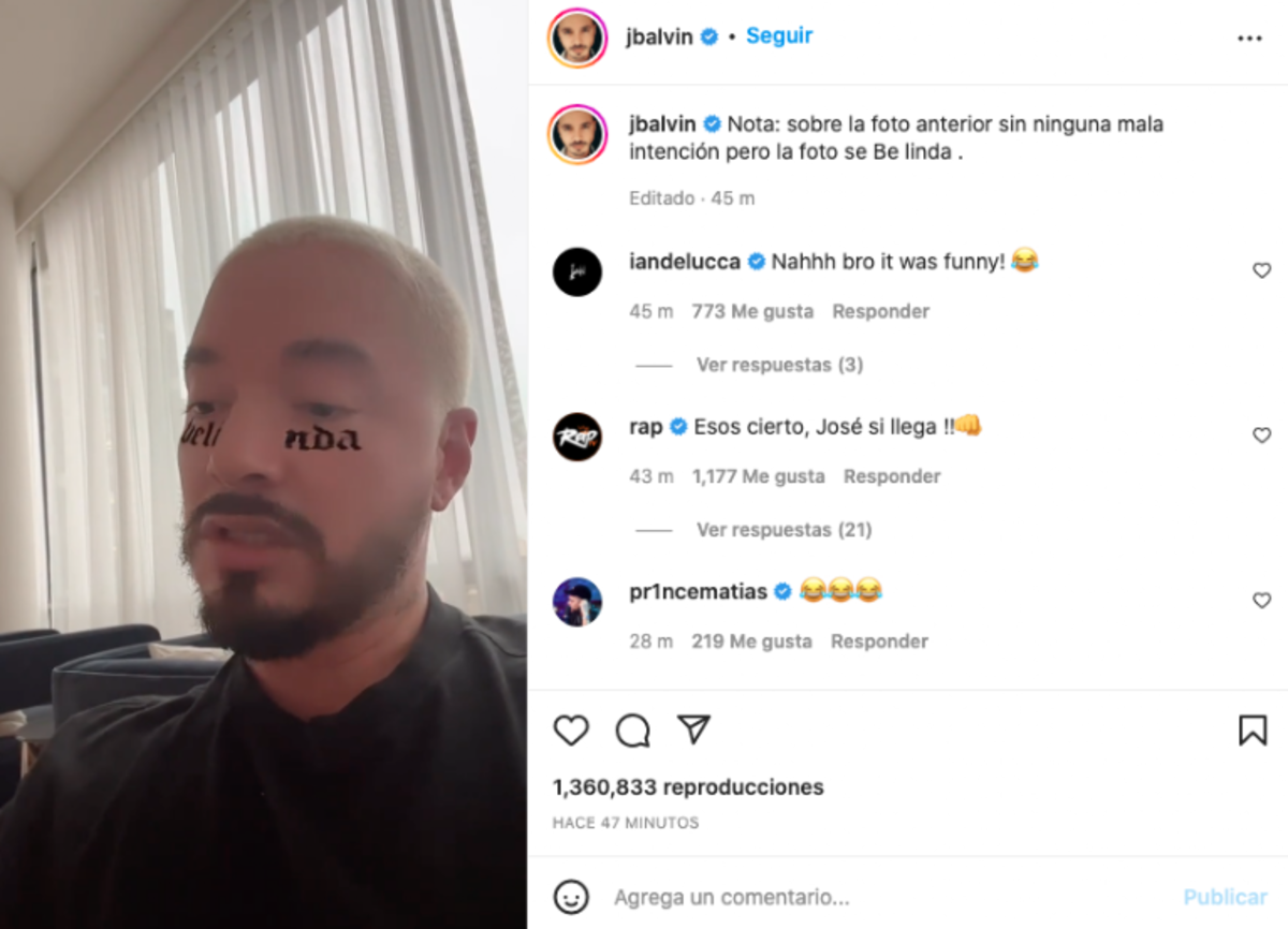“¿Cuál es cuál?, “Que tú no dejas plantada a la gente en un concierto”, “Es tu gemelo perdido”, “No te vayas a tatuar la cara”, “Ninguno tiene a Belinda” y “Separados al nacer”, fueron algunos de los comentarios que recibió J Balvin en su publicación.