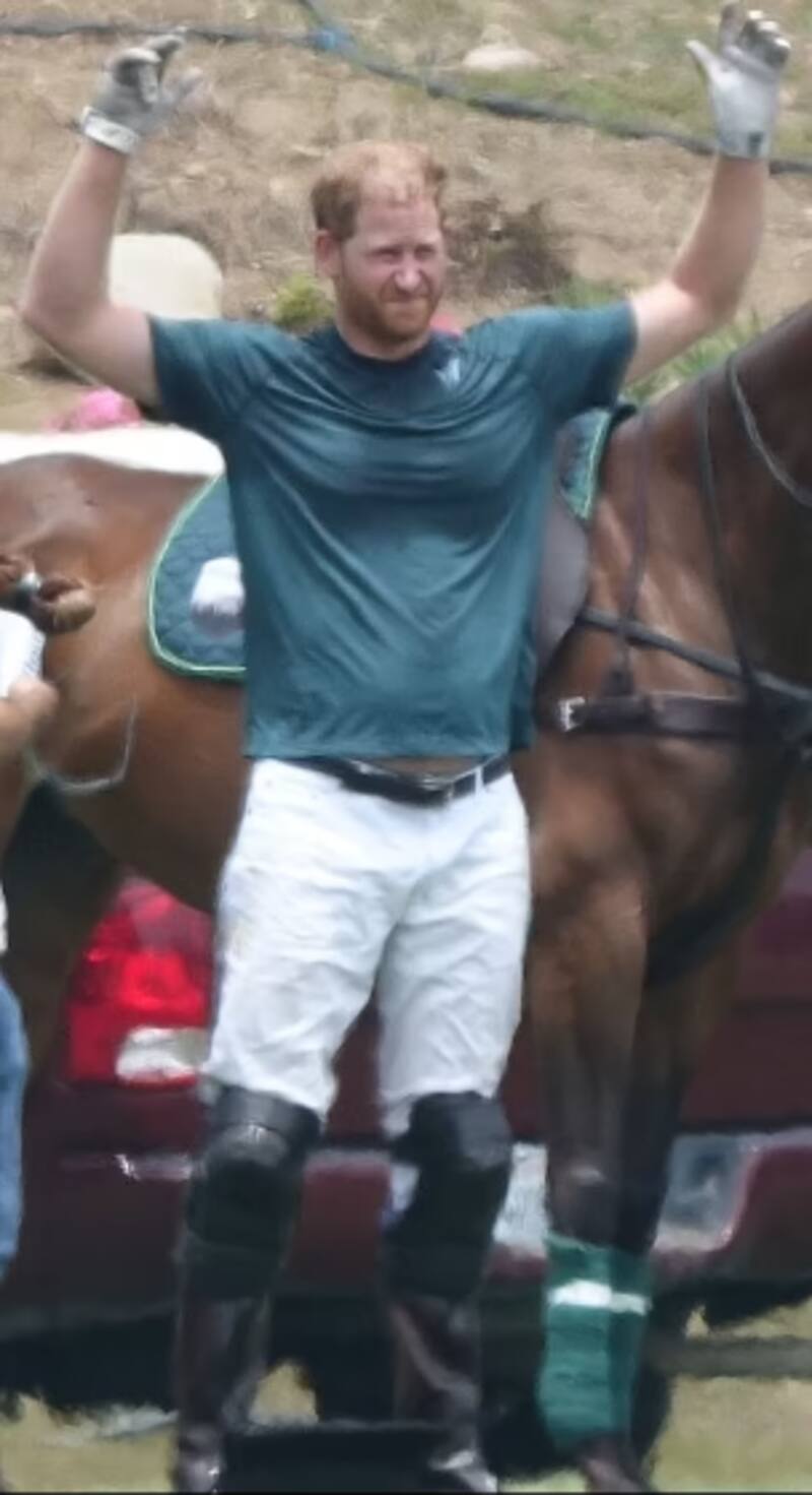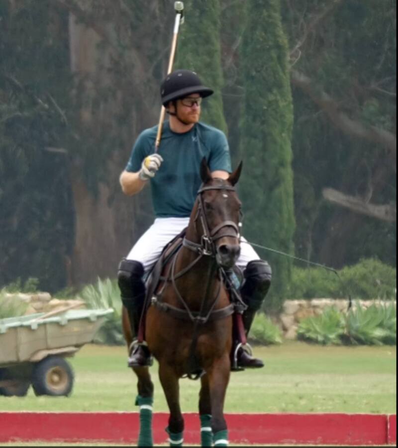 En las imágenes difundidas por el diario británico se puede ver al hijo de Lady Di y el príncipe Carlos muy concentrado y haciendo algunos estiramientos, en otras más se le ve arriba de un hermoso caballo marrón mientras se alista para continuar la partida.