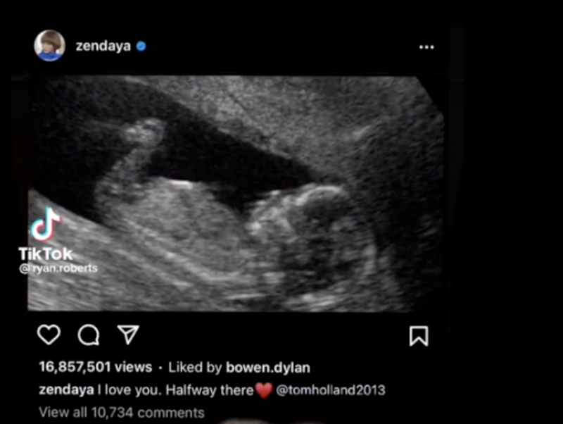 Fue en Tik Tok que se viralizó un video en donde se veía presuntamente la cuenta de Instagram de la actriz de Spider-Man como si hubiera hecho una publicación de una ecografía en la que se distinguía un feto, además de que la descripción era un mensaje para su novio.