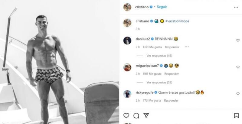 “El Comandante” hizo lo mismo, pero esta vez sí dejó ver que se encuentran en un yate, la foto es en blanco y negro pero se puede apreciar que también usa un traje de baño dejando su torso al descubierto. “Modo Vacaciones”, escribió en su publicación con más de tres millones de me me gusta.
