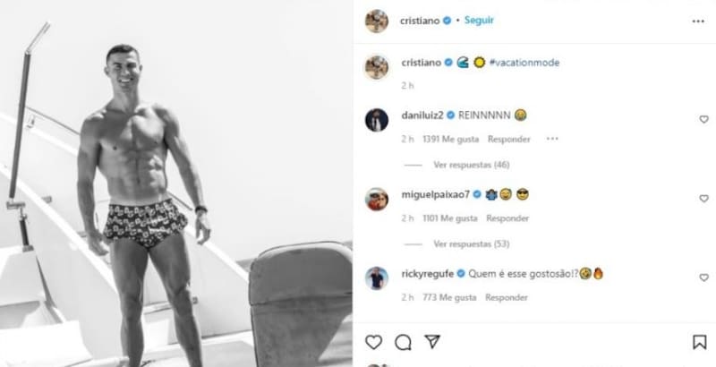 “El Comandante” hizo lo mismo, pero esta vez sí dejó ver que se encuentran en un yate, la foto es en blanco y negro pero se puede apreciar que también usa un traje de baño dejando su torso al descubierto. “Modo Vacaciones”, escribió en su publicación con más de tres millones de me me gusta.